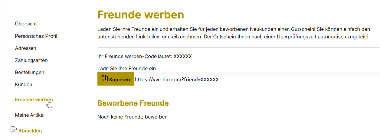 - Melden Sie sich in Ihrem Kundenkonto an und gehen Sie zum Bereich „Freunde werben“.