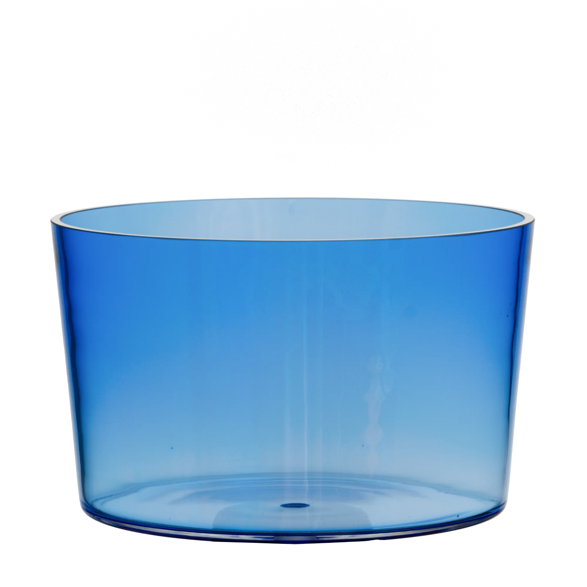 Die Glastanks aus bleifreiem Kristallglas werden in Handarbeit hergestellt. Es handelt sich dabei um ein sehr hochwertiges, ausgesprochen klares Produkt mit einer besonderen Brillanz in der Farbe bleu. Bei dieser manuellen Anfertigung formt der Glasmacher durch das Einblasen von Luft in eine Form das gewünschte Glas. Durch die hohen Temperaturen können kleine Lufteinschlüsse im Glas entstehen. Diese Bläschen oder eine unterschiedliche Glasdicke sind kein Mangel sondern ein Beweis von handgefertigter Qualitätsware. Der obere hat ein Fassungsvermögen von ca. 4 Litern, der untere von ca. 9 Litern.